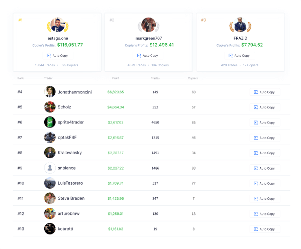 Auto CopyCopy the trades of other Traders,